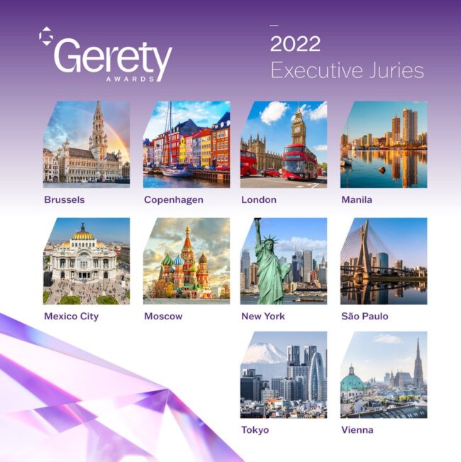 The Gerety Awards are open for 2022 entries and announce the 10 cities where the executive jury will be meeting.