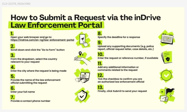 According to the management of inDrive, the online portal offers a dedicated and secure channel for authorised Nigerian law enforcement officials or agents to formally request user data, strictly for public safety and law enforcement purposes.