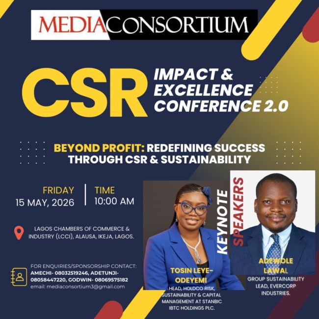 Seasoned sustainability professionals, Tosin Leye-Odeyemi, Head, HoldCo Risk, Sustainability & Capital Management at Stanbic IBTC Holdings Plc and, Adewole Lawal, Group Sustainability Lead at EverCorp Industries have confirmed to deliver the keynote address at the 2026 MediaConsortium CSR Impact and Excellence Conference.