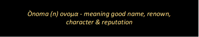 Ònoma (n) ονομα - meaning good name, renown,